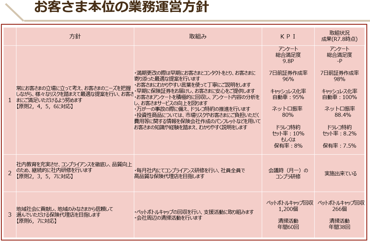 お客さま本位の業務運営方針